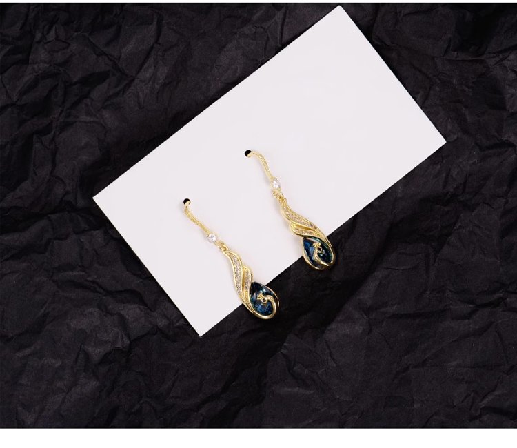 鋯石孔雀鑲鑽流蘇耳環